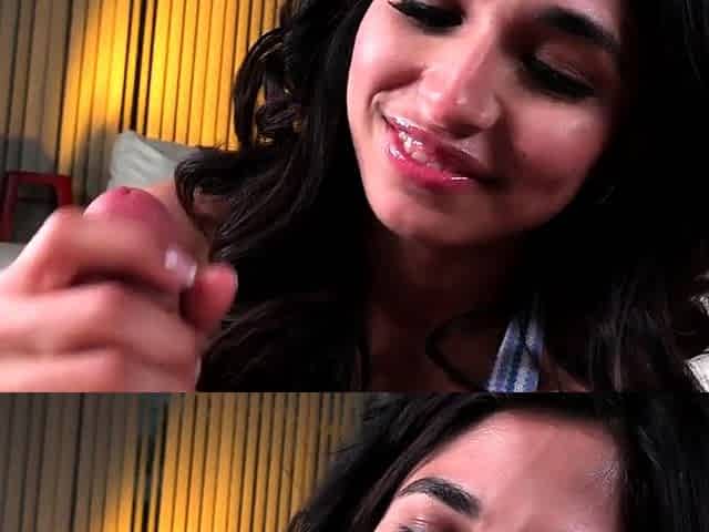 "Oral POV 21yo gal with perky boobs sucks cock n talks slutty"