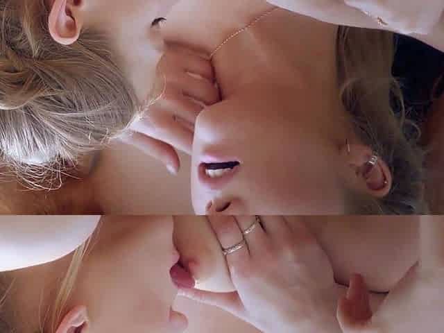 Blonde and brunette lesbians licking and sucking pussy
