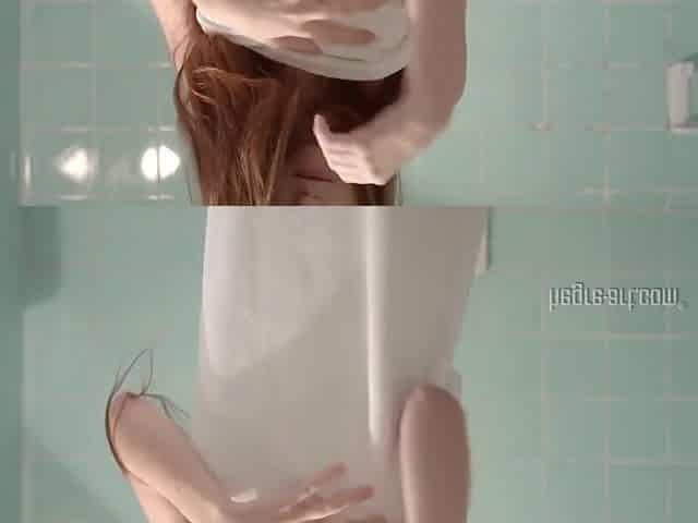 Gorgeous blonde girl had a shower