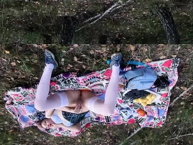 French Teen Masturbates in a Public Forest