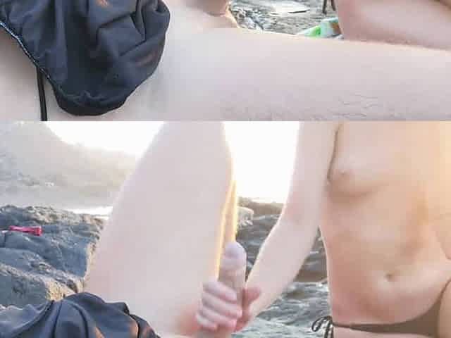 Public BJ on the beach, interrupted by a stranger with his dog.