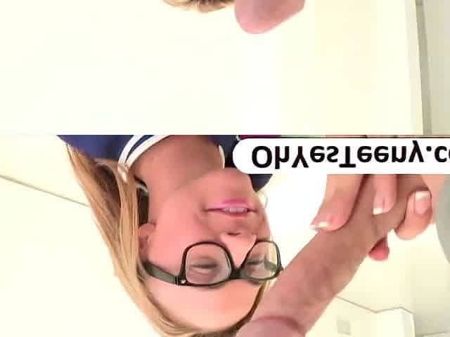 Slutty teen ends up with a facial after playing with monster cock