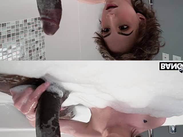 Tristan Summers is sucking the black monster cock in the bathtub