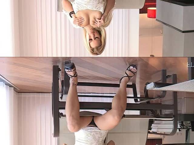 Stunning blonde teen in black leather corset gets naked