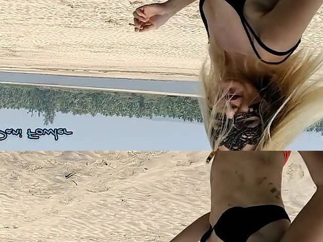 Golden-Haired Cute Teen at beach flashing her cunt