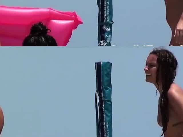 nudists get naked and heat up a public beach