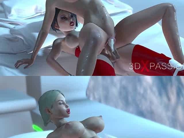 Intense zero-gravity orgy on a space station! 3D dickgirl dominates and pleasures a cute teen