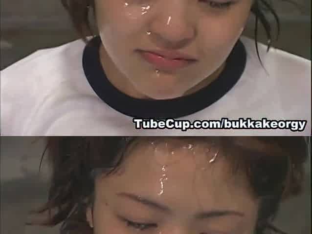 JapaneseBukkakeOrgy White Semen Bukkake 4, Another hardcore cum drinking and dick sucking scene featuring a playful Japanese sch