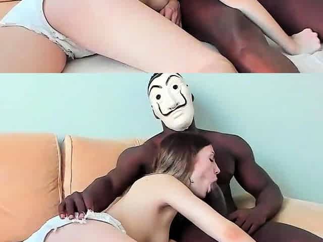 Horny teen get pounded hard by black and white guy live at s