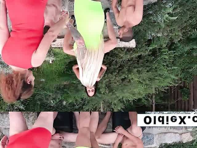 Lesbian Group Sex Orgy Outside by the pond - caterpillar with mutual fingering and masturbation