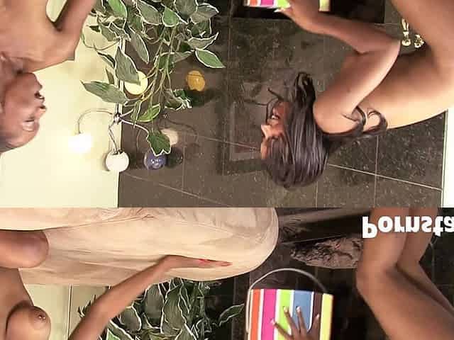 Lesbian hottie Erika Vution enjoys black on black girl on girl action