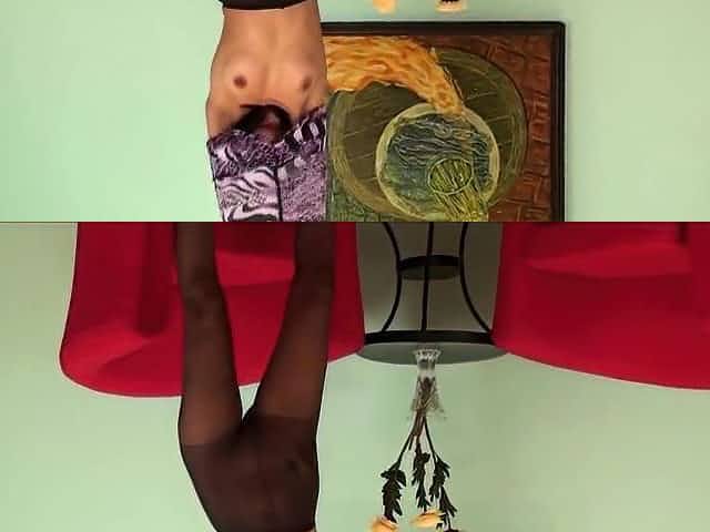 Great pantyhose knob jerking off action