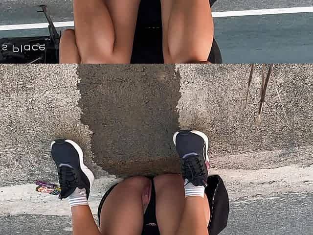 "Motorbike girlfriend peeing on the roadside"