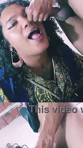 Brunette asian trans in black dress sucks a fat cock till