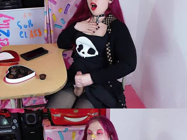 Cute Tranny Cums on Candy During Class