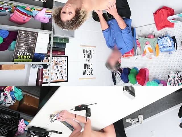 Skinny blonde shoplifter gets caught and punish fucked