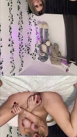 Slim schoolgirl in white socks cums many times