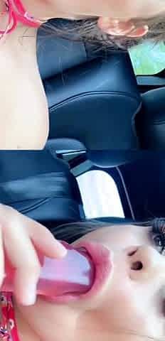 Independent Teen brunette girl toying pussy outdoor
