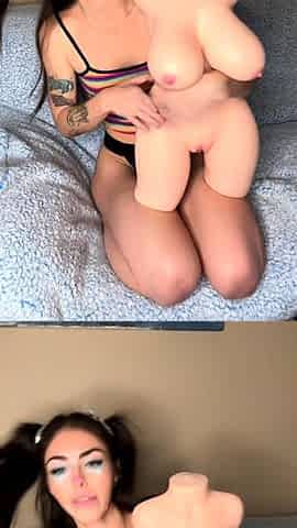 cute college girl plays with her lovenestle doll