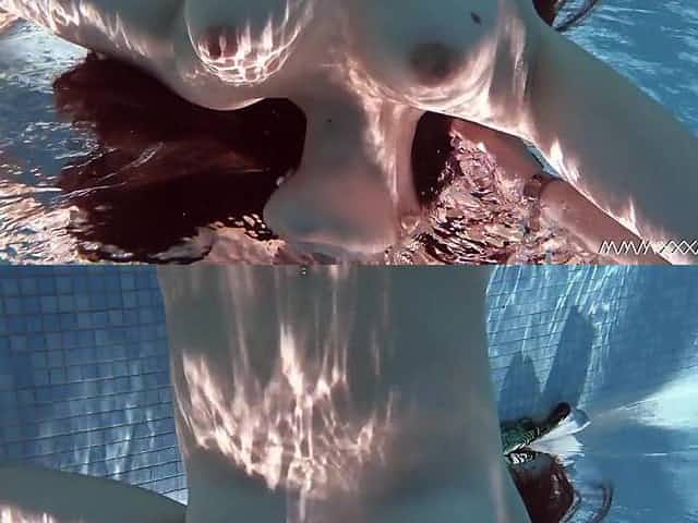 Two foxy hussies strip each other while diving in the pool
