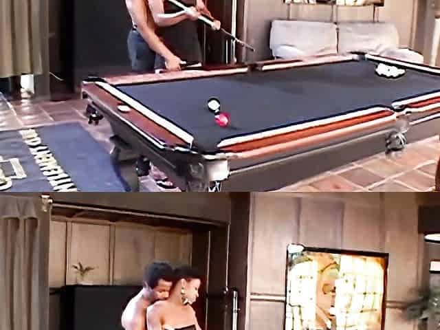 Horny brunette swallows warm cum after interracial fucking