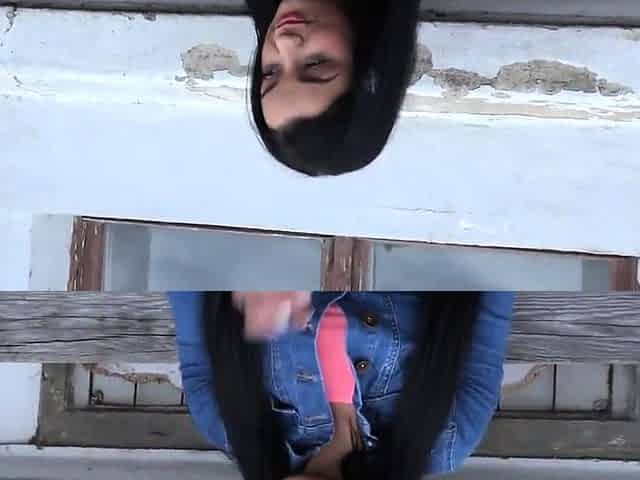 Virgin in pink fishnets flashing tiny cunt