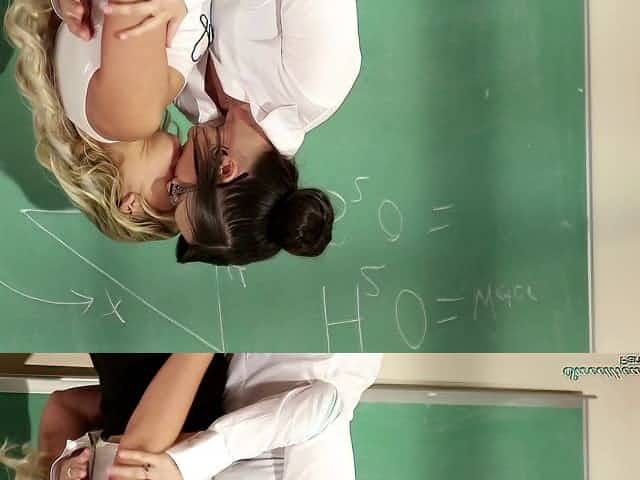 College professor has sex with an adorable blonde lesbian coed