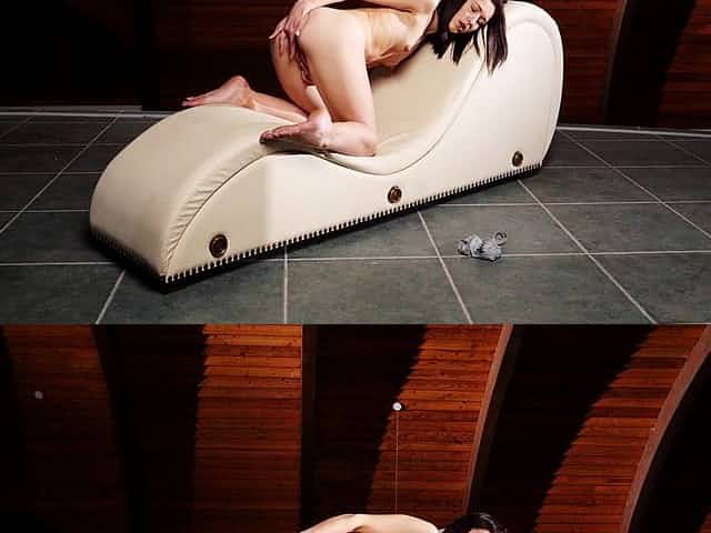 Solo girl moans while playing with her clit on the sofa - Peachy B