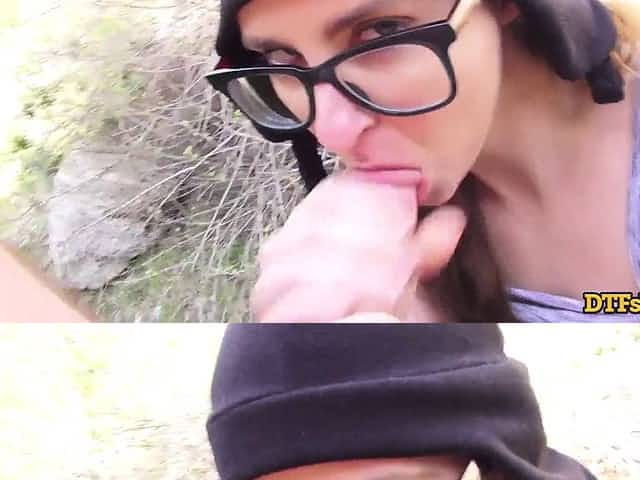 NERDY BRUNETTE SMALL TITS JAY TAYLOR TAKES MOUTHFUL OF CUM AFTER OUTDOOR FUCK
