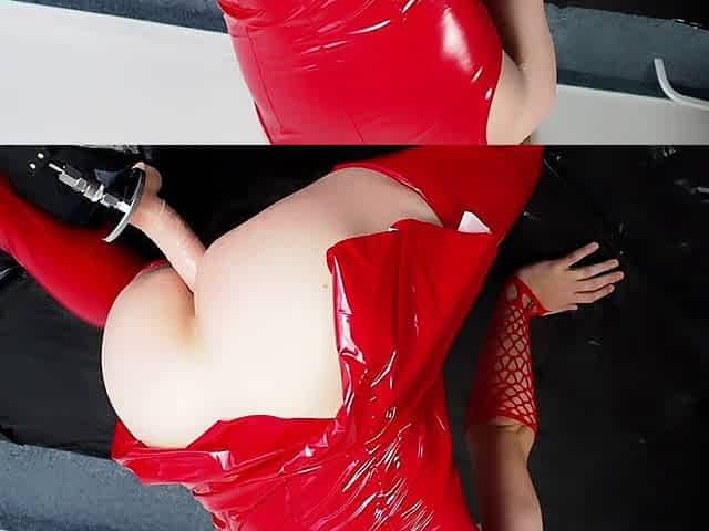 RachelSexyMaid 39 Red Latex Catsuit Monster Dildo Session