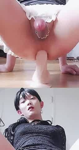 Sissy floozy rides in Chastity