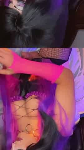 Screwing in latex. Non-binary tattooed trans banged by large penis. Creampie. Face sitting.