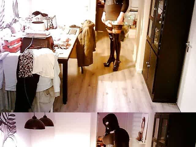 Female Mask Crossdresser Anal Dildo In Latex Lingerie