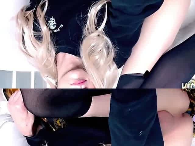 Pretty Teen Trans Doll In Glasses And Stockings Strokes Her Cock On Webcam P4