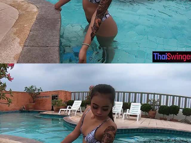 Thai slut getting freaky by the pool getting hammered up