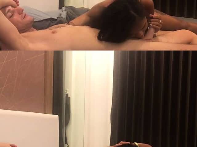 indonesian babe gives bj till hubby cums