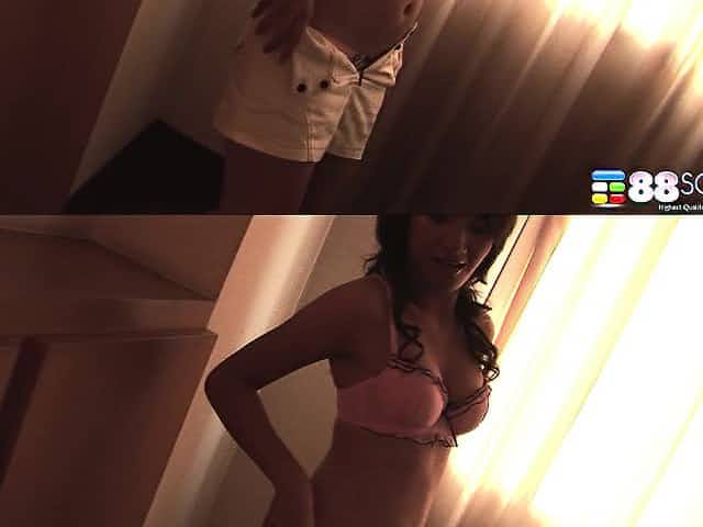 Young Asian beauty undresses slowly as she playfully teases the camera