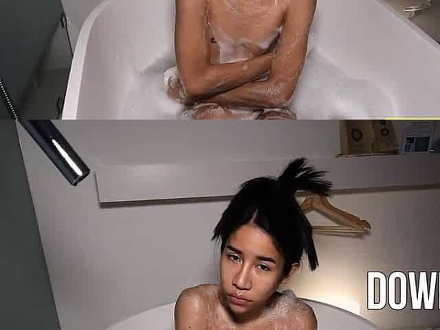 Skinny Thai femboy gives a POV blowjob in a bath tub at home