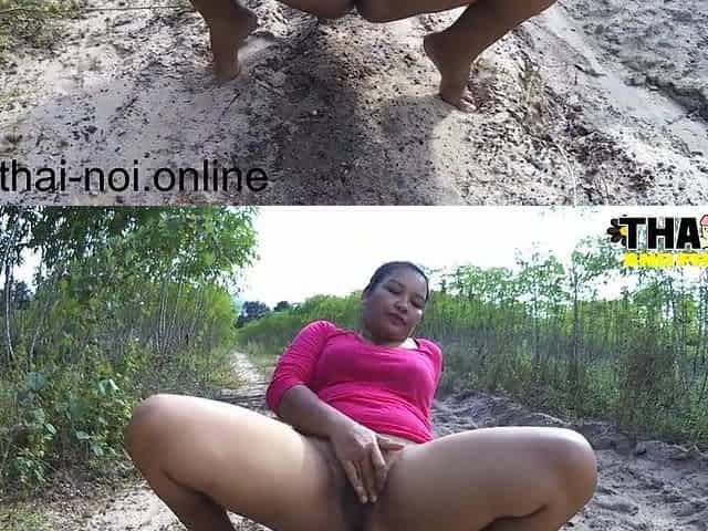 Thai pisses on the dirt road for you! Outdoor pussy fucking!