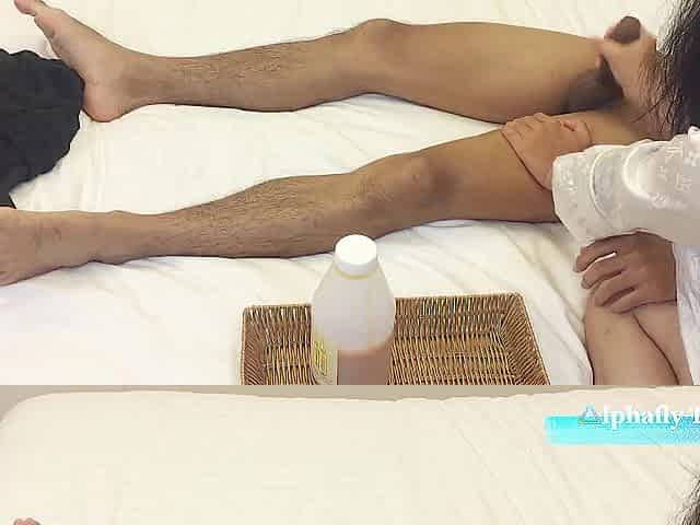 Asian teen sits on her clients back and massages him