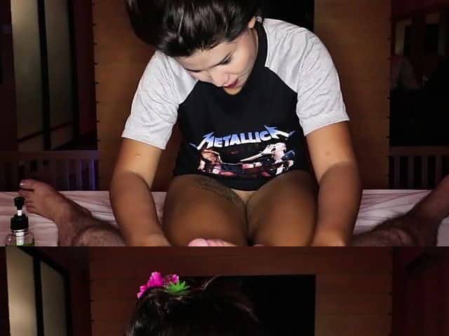 Panty less Thai teen gave a hot massage