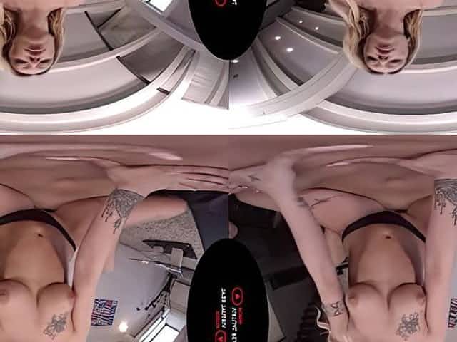 Curvy blonde babe with natural tits gets blindfolded then drilled hardcore