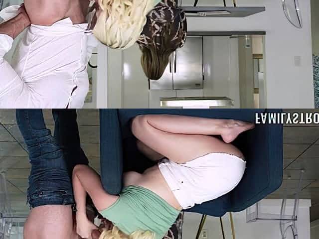 Naughty is sucking her stepdad's cock and gets fucked in the bedroom