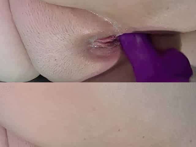Thick slut plays with dildo and her own cum