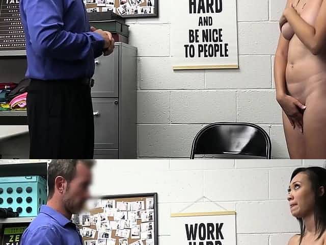 Busty teen thief felt a security guys fat cock in her