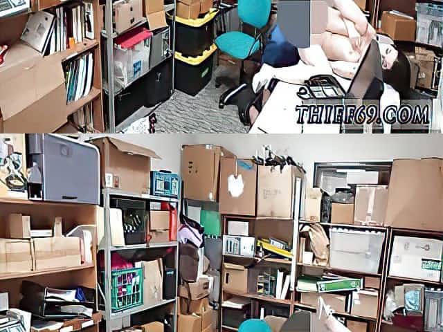 Rough sex for a petite teen thief in the security office!