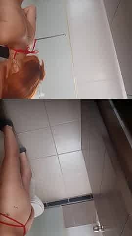 sexy gal makes movie scene in her home washroom.