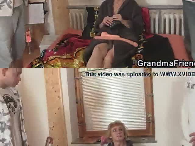 60 years old skinny granny pleases two men. 60 years old skinny granny pleases two men