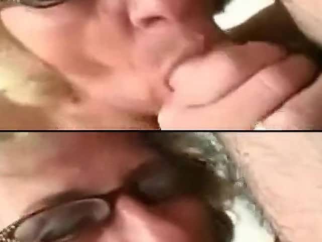 Skinny greyhaired granny sucks cock