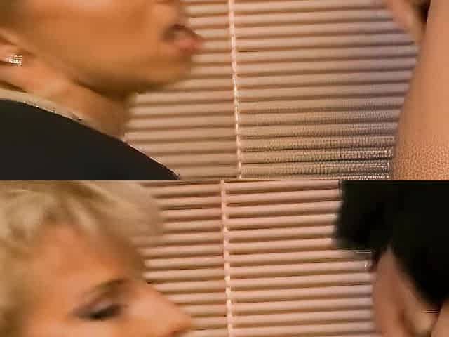 Steamy blonde and sultry brunette engage in a wild kinky threesome taking cock deep